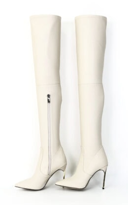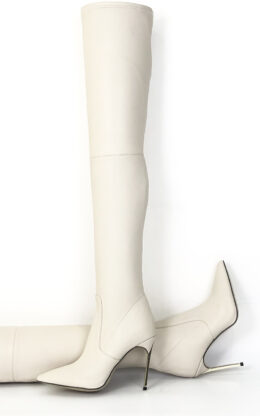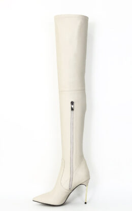 10公分金色金属刀锋跟 米白色高品质弹力羊皮小尖头大腿靴  皮料舒适柔软