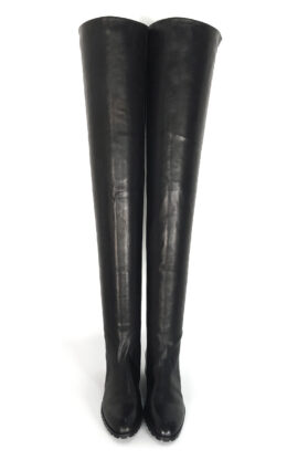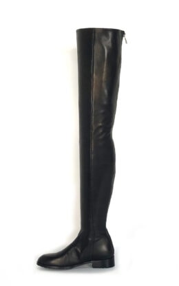 2cm粗跟 黑色高品质头层牛皮 经典圆头大腿靴 皮料舒适