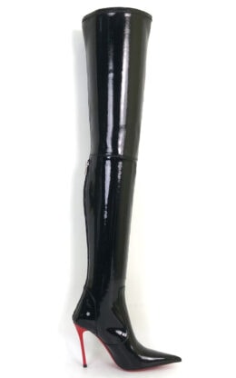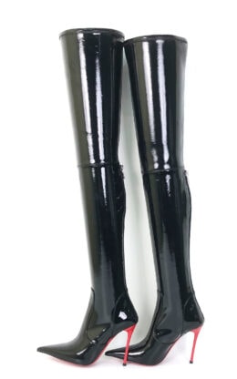 11CM细跟 黑色高品质弹力漆皮 长尖头 大腿靴