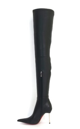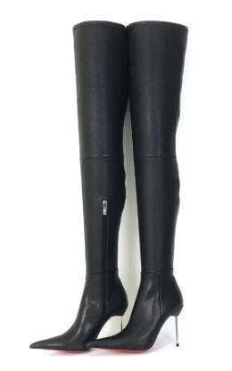 11CM细跟 黑色高品质弹力羊皮 长尖头 大腿靴