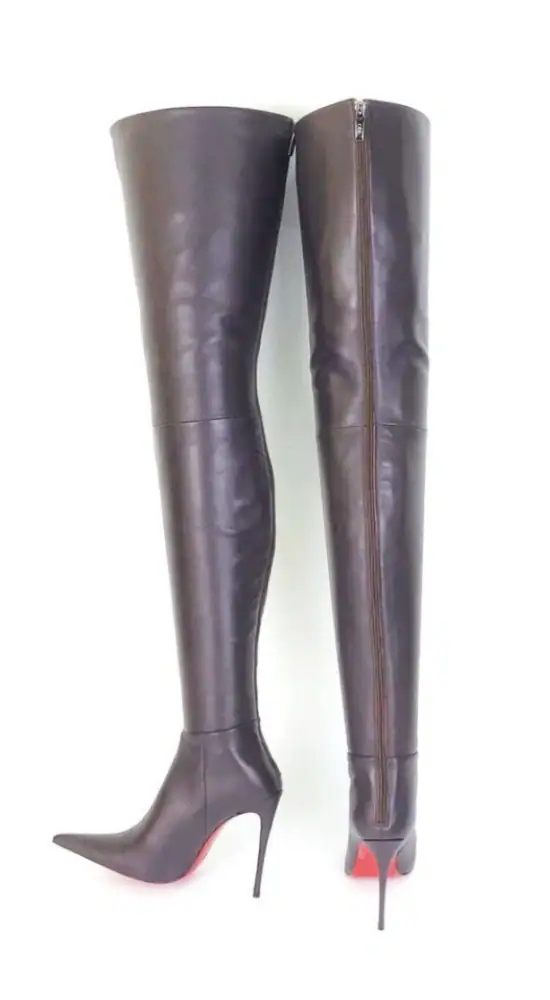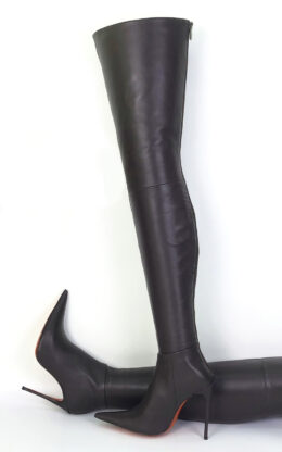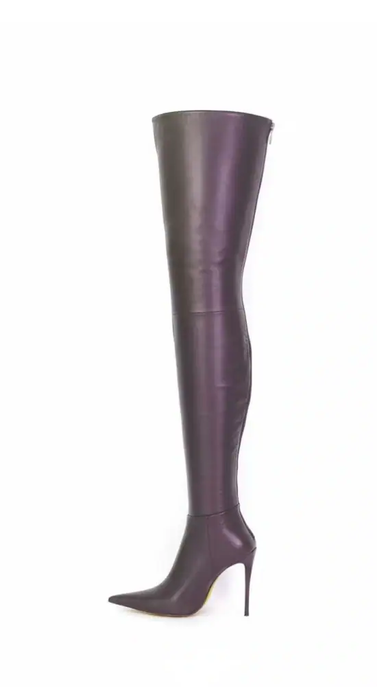 12CM细跟 棕灰色混种羊皮 长尖头大腿靴