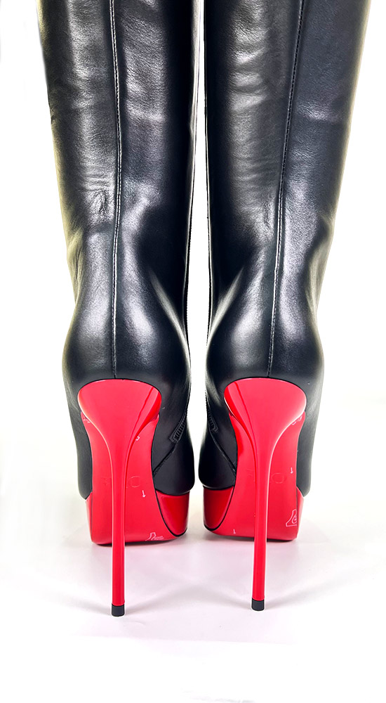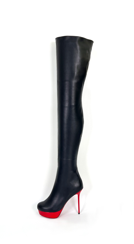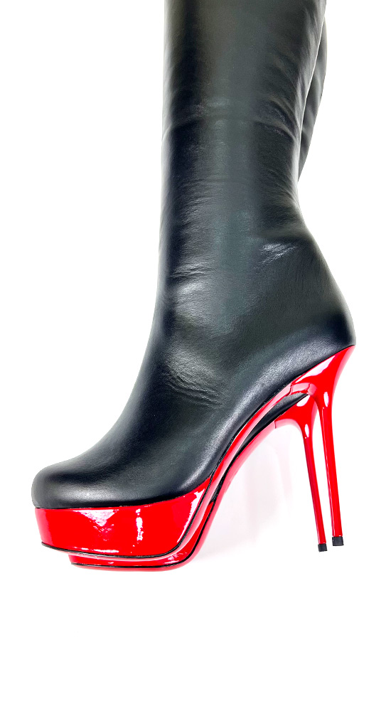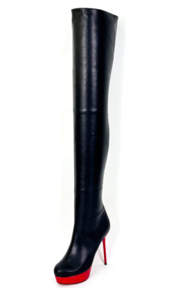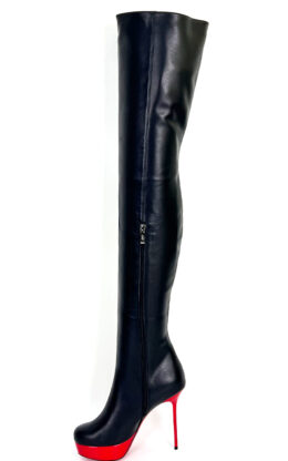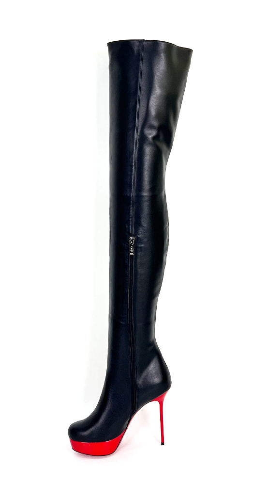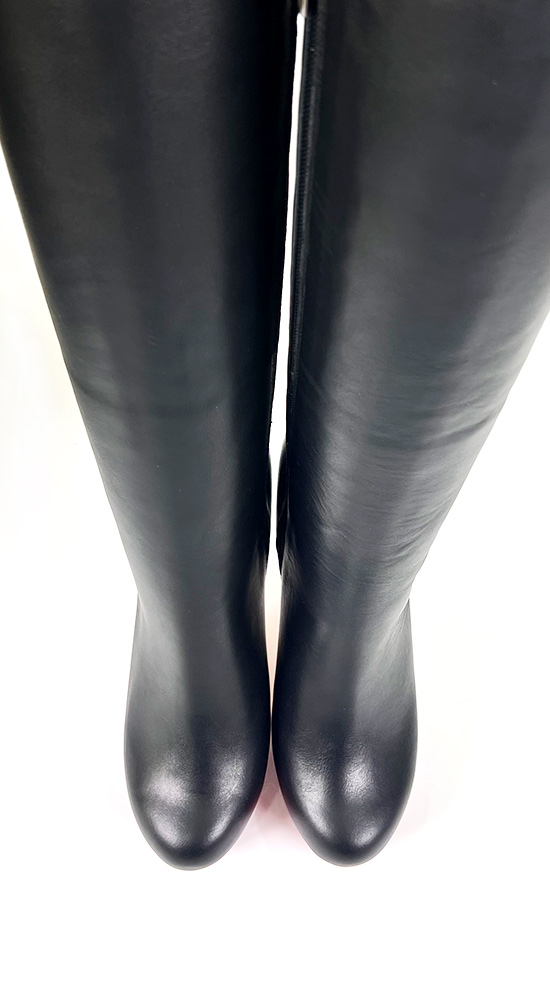 3CM水台13CM细跟黑色高品质头层牛皮经典圆头大腿靴